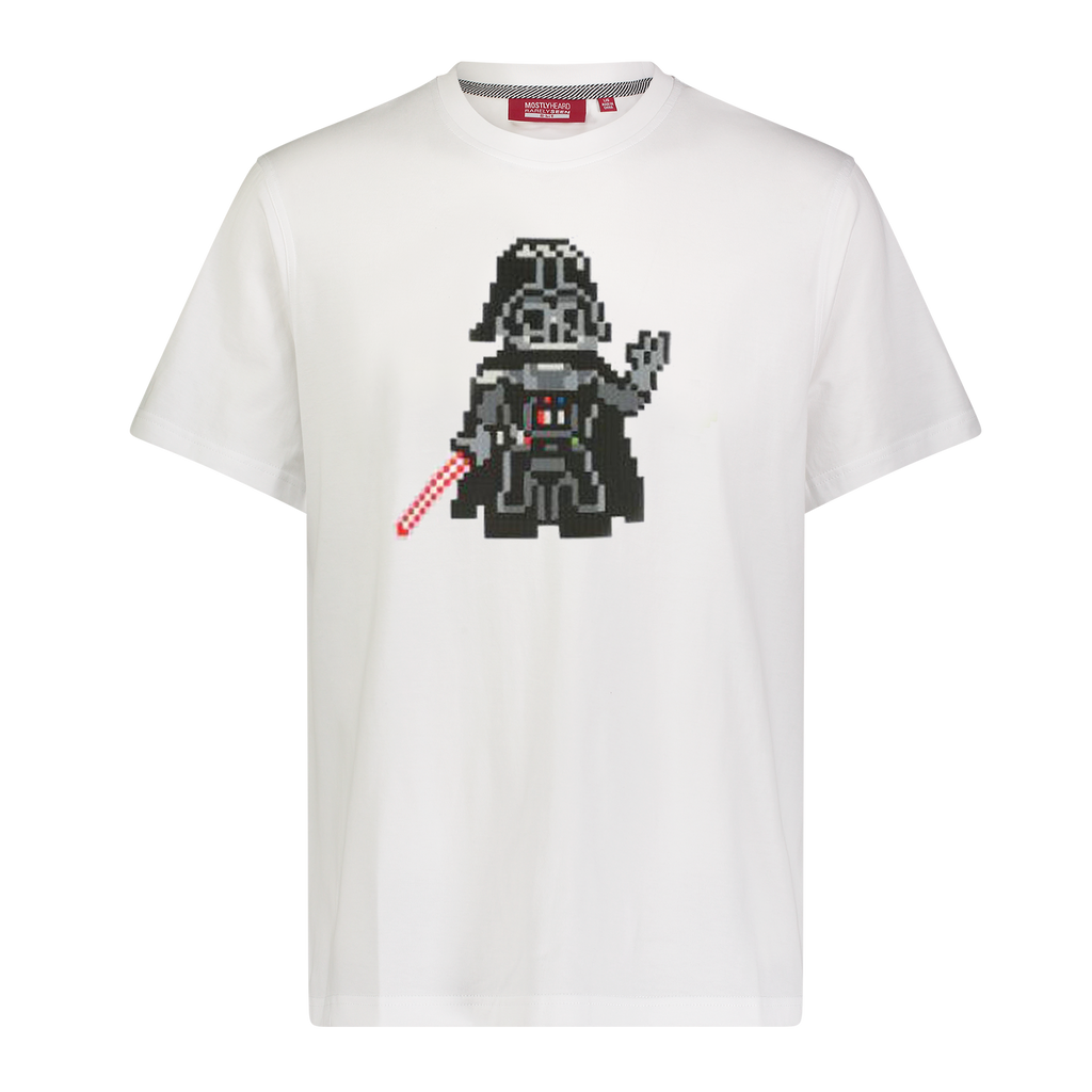 White cotton invader T-shirt from Mostly Heard Rarely Seen 8-Bit featuring a round neck, short sleeves and a graphic print.