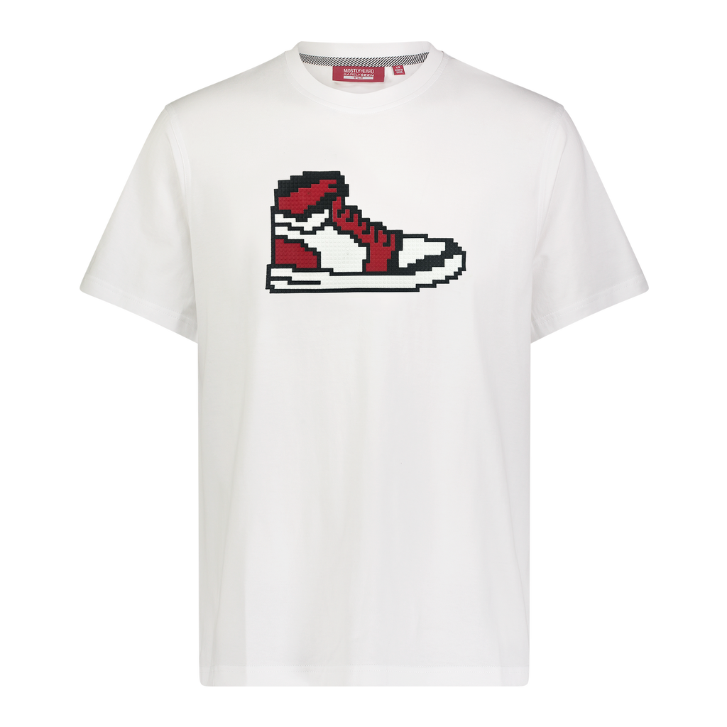 Short sleeve cotton jersey T-shirt. Signature "8-Bit" pixelated silicone appliqué at chest.